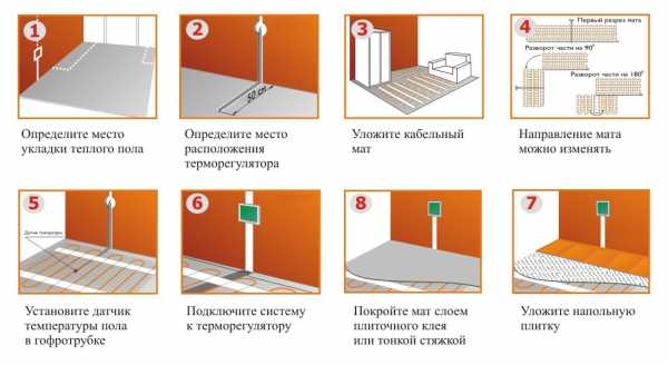 Подключение кабельных систем (нагревательные секции и нагревательные маты)