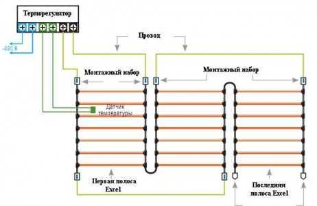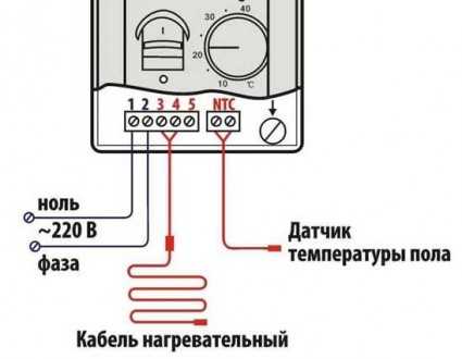 Схема подключения инфракрасного теплого пола через терморегулятор