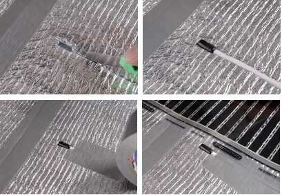 - Термоотражающий слой разрезается и температурный датчик утапливается в углубление до уровня пола.