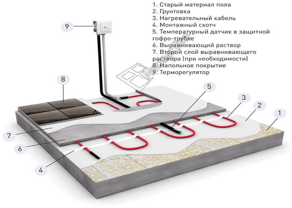 Правильная укладка плитки на тёплый пол происходит по следующим правилам: