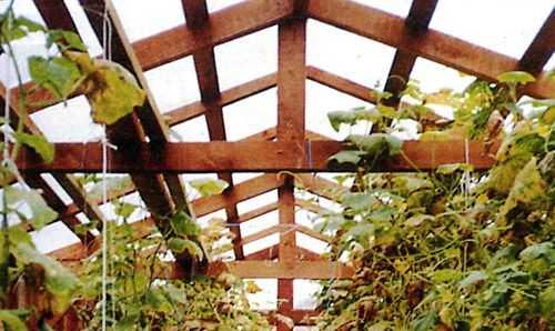 - Если ваша теплица из деревянных рам, то и крышу так же можно сделать разборную, из деревянных рам. Тогда будет возможность, на зиму крышу вообще снимать.