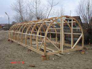- Можно делать отдельно деревянные рамы и потом собирать стены как конструктор, теплица из деревянных рам, удобна тем, что при необходимости, легко разбирается и удобно выполнять фрагментарный ремонт, но на неё уходит больше материала, как следствие, она обходится дороже.