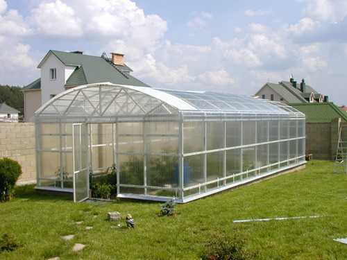 При изготовлении теплиц поликарбонат постепенно вытесняет стекло и пленку