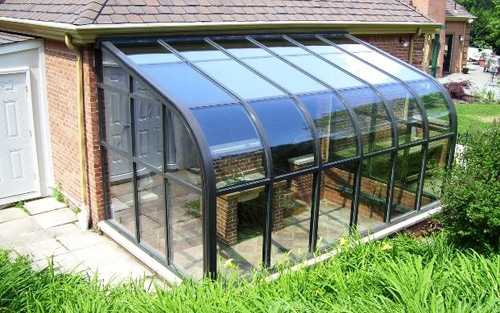 Совет! Зимой сооружение следует бережно очищать от снега, не допуская скалывания и соскребания льда, чтобы не повредить защитный слой на поликарбонате.