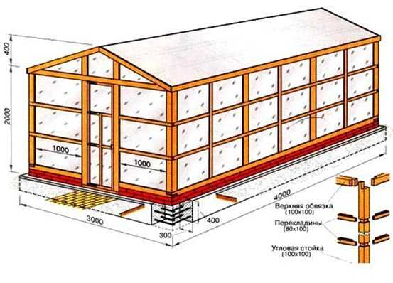 Схема пристенной односкатной теплицы