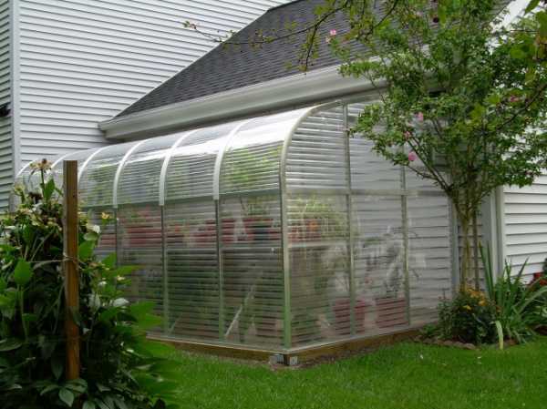 Односкатные и полуарочные конструкции обычно размещают у защищенной от ветра стены дома или хозяйственной постройки. Они не требуют значительных финансовых затрат, к ним легко подвести воду и электроэнергию. Компактные пристенные теплицы считают самым бюджетным вариантом зимнего огорода.