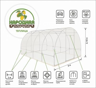В каталоге нашей компании представлен широкий выбор удобных и функциональных теплиц шириной 3 и высотой 2,05 метра: