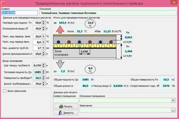 Расчет теплоотдачи для водяного теплого пола
