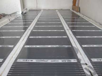 Инфракрасную пленку следует укладывать встык, перехлест полос пленки при монтаже недопустим. Ее следует надежно закрепить скотчем, не допуская повреждений