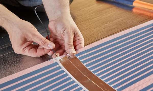 Когда вся пленка будет уложена, можно переходить к подключению теплого пола. Все ряды пленки скрепляются при помощи зажимов, которые шли в комплекте со всей системой. Другие не подойдут: самое худшее, что может случиться, — система просто не будет работать. Помните, что все ряды пленки подключают параллельно, а для экономии стоит соединять те стороны рядов, которые расположены ближе к терморегулятору.