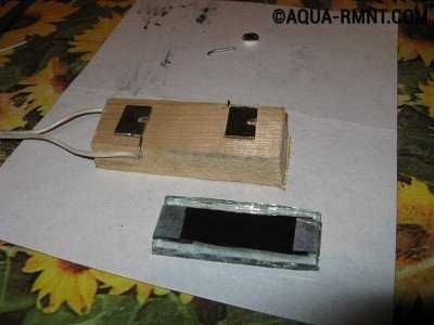 - Подключаем оголённые концы провода к графитовому составу и склеиваем две пластиковые плиты и дожидаемся полного высыхания.
