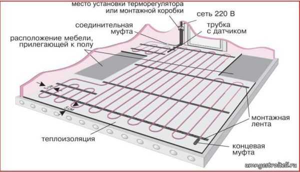 Система электрического тёплого пола состоит из нескольких взаимосвязанных частей. К ним относятся:
