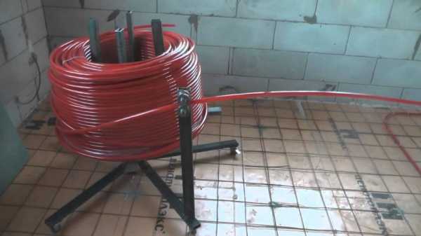 - В-третьих, это сама труба. Она укладывается змейкой и крепится либо к существующему основанию сквозь слой утеплителя, либо просто привязывается к армирующей сетке. Предпочтение лучше отдать первому способу крепления, так как он позволяет более или менее прочно соединить стяжку с основанием через пенопласт.
