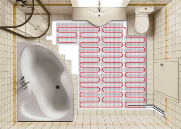 Электрические теплые полы стелют таким образом, чтобы они не имели контакта со стеной, обычно рядом с ванной и по периметру помещения.