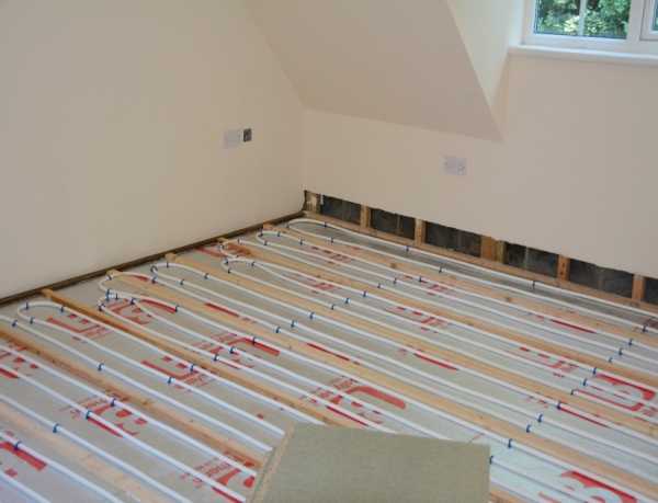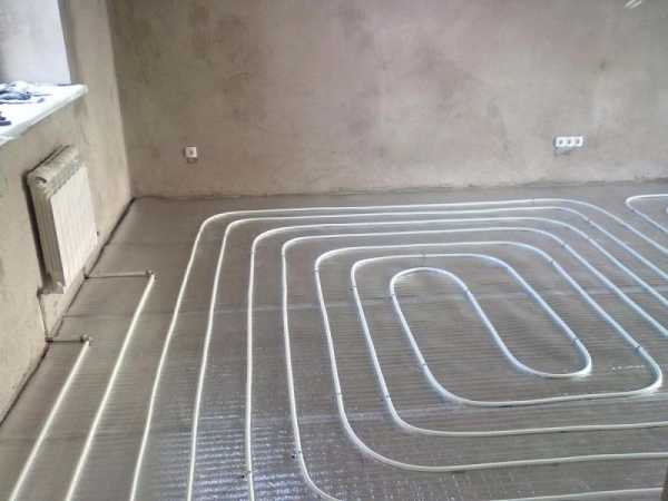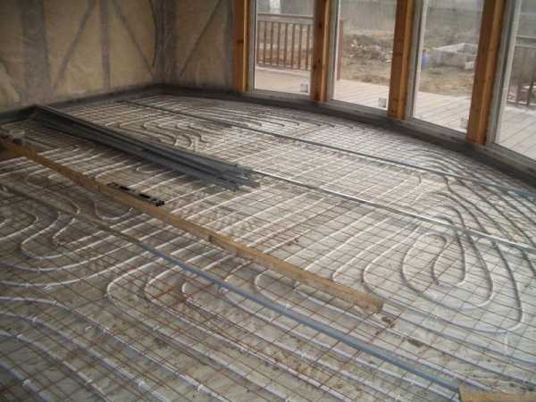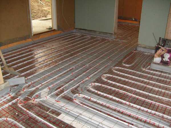Этот теплый пол считается бюджетным вариантом отопления. Установку труб, необходимо проводить при начальном этапе строительства.
