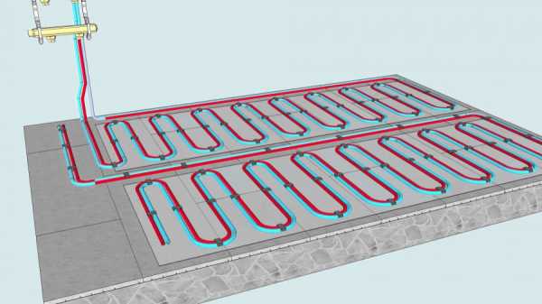На подготовленной поверхности раскладывают трубы. Для укладки труб пользуются двумя способами — улитка и змейка. Схемы укладки показаны на фото теплых полов от отопления.