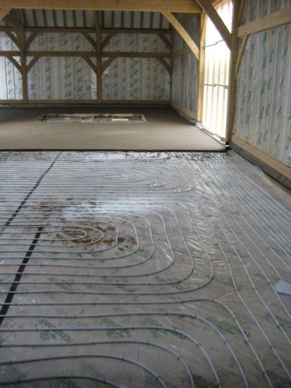Задумываясь об установке пола по мокрой технологии, нужно учесть, что он имеет внушительный вес, который выдержит не каждый фундамент. Диаметр труб в среднем составляет 3 см, таким же по толщине должен быть слой песко-цементной стяжки. Общий вес конструкции дает серьезную нагрузку на фундамент.