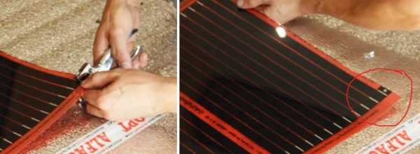Резать можно инфракрасный пол по специальным линиям разреза нанесенные изготовителем эти линии идут каждые 20-30 сантиметров. В комплекте идут специальные клеммы для подключения к электричеству, а так же изоляционный материал на битумной основе. Про технологию укладки я расскажу Вам чуть ниже.