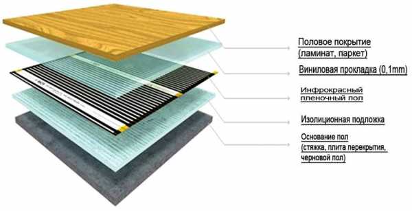 Инфракрасный пленочный | Наиболее современные системы, токопроводящие элементы из карбоновых соединений. По цене относятся к самому дорогому сегменту, могут использоваться под любыми покрытиями. Основание для линолеума делается из фанеры или других видов плит. |