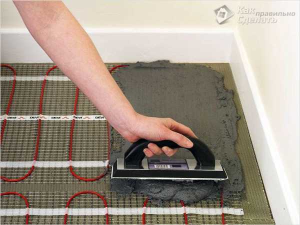 ΠΠ΅ΡΠ΅Π΄ ΡΠ΅ΠΌ ΠΊΠ°ΠΊ ΡΠ΄Π΅Π»Π°ΡΡ ΡΠ»Π΅ΠΊΡΡΠΈΡΠ΅ΡΠΊΠΈΠΉ ΡΠ΅ΠΏΠ»ΡΠΉ ΠΏΠΎΠ», Π½Π°Π΄ΠΎ ΡΠ°Π·ΠΎΠ±ΡΠ°ΡΡΡΡ Π² Π΅Π³ΠΎ ΡΡΡΡΠΎΠΉΡΡΠ²Π΅. ΠΠΎΠ½ΡΠ°ΠΆ ΠΏΡΠΎΠΈΠ·Π²ΠΎΠ΄ΠΈΡΡΡ Π½Π° ΡΠ΅ΠΏΠ»ΠΎΠΈΠ·ΠΎΠ»ΠΈΡΡΡΡΠ΅ΠΌ ΡΠ»ΠΎΠ΅, ΠΊΠΎΡΠΎΡΡΠΉ Π΄Π΅Π»Π°Π΅ΡΡΡ ΠΈΠ· ΠΏΠΎΠ΄Ρ ΠΎΠ΄ΡΡΠ΅Π³ΠΎ Π΄Π»Ρ ΡΡΠΈΡ ΡΠ΅Π»Π΅ΠΉ ΠΌΠ°ΡΠ΅ΡΠΈΠ°Π»Π°. ΠΠΎΡΠ»Π΅ ΠΌΠΎΠ½ΡΠ°ΠΆΠ° ΠΏΠΎΠ» Π·Π°Π»ΠΈΠ²Π°Π΅ΡΡΡ ΡΠ°ΡΡΠ²ΠΎΡΠΎΠΌ ΠΏΠ΅ΡΠΊΠ° ΠΈ ΡΠ΅ΠΌΠ΅Π½ΡΠ°. ΠΠΎΡΠ»Π΅ Π·Π°ΡΡΡΠ²Π°Π½ΠΈΡ ΡΠ°ΡΡΠ²ΠΎΡΠ° ΠΌΠΎΠΆΠ½ΠΎ ΡΠ²Π΅ΡΡ Ρ ΠΏΠΎΠ»ΠΎΠΆΠΈΡΡ Π»ΡΠ±ΠΎΠΉ ΠΌΠ°ΡΠ΅ΡΠΈΠ°Π». ΠΡΠΎ ΠΌΠΎΠΆΠ΅Ρ Π±ΡΡΡ ΠΈ Π»ΠΈΠ½ΠΎΠ»Π΅ΡΠΌ, ΠΈ Π΄ΠΎΡΠΊΠ°, ΠΈ Π΄ΡΡΠ³ΠΎΠ΅ ΠΏΠΎΠΊΡΡΡΠΈΠ΅.
