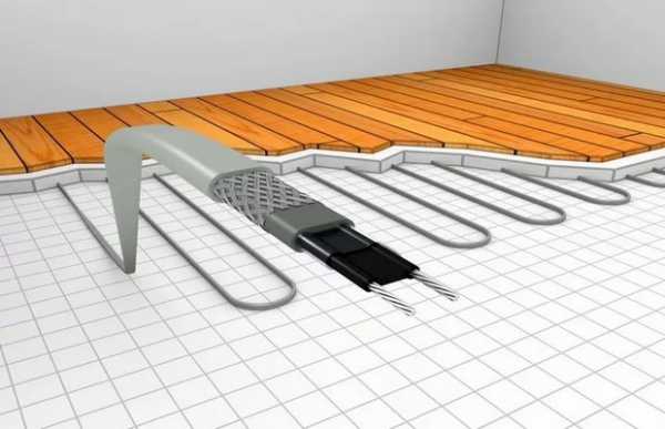 - Кабельный тип электрического теплого пола представляет собой систему, состоящую из нагревательного элемента в виде провода и подключаемых у нему элементов управления и регулировки (термодатчиков, таймеров и т. п.). При этом важно чтобы кабель укладывался на расстоянии от 7,5 до 10 см друг от друга, в зависимости от мощности и других параметров системы, что обеспечит долговечную и качественную ее работу;