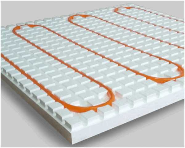 Плиты, используемые в работе, могут быть двух видов, обычные, пенопластовые и экструдированные. Толщина плит, необходимых для теплого пола, составляет всего 10-40 мм. В толщу плит монтируются трубы отопительного контура, которые сверху покрываются полистирольными матами. Благодаря специальным пазам и бобышкам плиты и листы надежно фиксируются друг с другом. Полистирольные маты имеют с боков монтажные крепления, благодаря которым осуществляется крепеж отдельных элементов в единое, цельное поле.