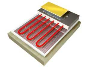 На практике данная система укладывается на капитальные железобетонные перекрытия с последующим обустройством цементно-песчаной стяжки. В среде профессионалов данный вариант называют «мокрый» или «заливной». Эффективность и надежность метода подтверждается высокой теплоотдачей и хорошими прочностными характеристиками (до 500 кг/м²).