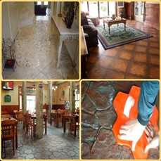 На завершающей стадии финишного декоративного покрытия стяжки можно воспользоваться более экономным и менее банальным вариантом, чем керамическая плитка, а именно — на подготовленную поверхность стяжки нанести тонкий слой цементной смеси (0,6 — 10мм) и с помощью штампов для бетона сделать тиснение или печать определённой выбранной вами текстуры. Вы существенно сэкономите на кафеле и получите долговечное, надёжное покрытие с хорошей теплопроводностью и теплоотдачей. Детальнее об этом читайте на странице Тонкослойный декоративный бетон.