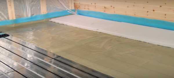 После всего этого пол покрывается полиэтиленовой пленкой толщиной 100-200 мкм.