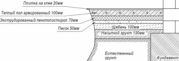 К сведению! Тёплый пол не касается самого фундамента здания и стен, его укладка осуществляется на своё основание.