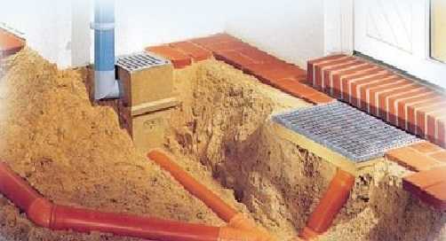 - Снять грунт на 30–40 см. Сделать подкоп под фундаментом и траншею для того чтобы протянуть трубу в сточную яму. Зарыть трубу с равным распределением песка. При этом до укладки трубы трамбовать траншею.