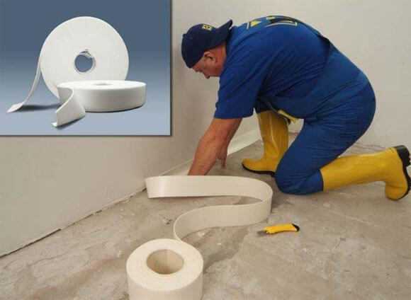 - Слоя гидроизоляции. Прекрасным дополнением ему служит демпферная лента, которая устанавливается по периметру комнат.