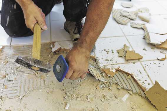 - Полностью удалить старое перекрытие. Для этого снимается кафель, паркет, линолеум или другой материал, который использовался в качестве облицовочного.