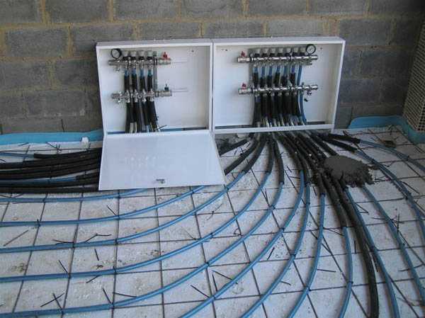 После окончания подготовительно этапа направленного на выравнивание и очистку используемой поверхности, необходимо подготовить поверхность под блок коллектора. После этого обратная и напорная ветвь подтягивается к нему при помощи отводов труб, которые представляют собой систему центрального отопления.