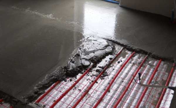 Заливка бетоном должна проводиться с соблюдением ряда инструкций, так как, когда трубы будут покрыты слоем вещества, то добраться к ним будет проблематично, так что стоит тщательно все проверить и лишь затем приступать к выполнению задачи. Читайте также: «Как сделать теплый пол в гараже – монтаж электрического и водяного пола».