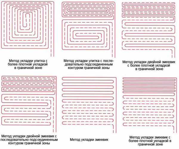 Технология устройства теплых полов подразумевает несколько вариаций закладки трубопровода: