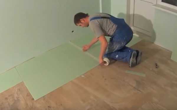 На стыках подложку проклеивают скотчем