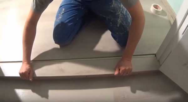 Продолжайте таким же способом укладывать финишное покрытие во всей комнате. Заключительный этап – отделка порога. Как правильно и симметрично монтировать ламель у двери?
