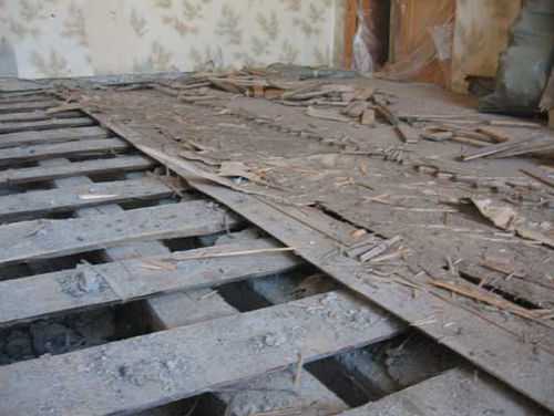 Обычно этого достаточно, но если выявлены серьезные повреждения пола, то придется разбирать его полностью, вплоть до лаг.