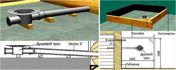 Расположение и виды душевых трапов и сливов для душевых кабинок