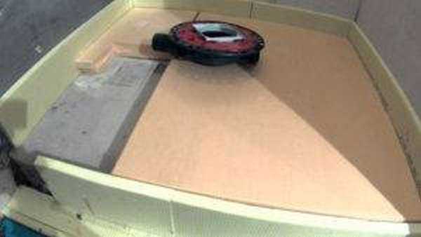 - Заливаем поверхность стяжкой (не забываем про необходимый уклон 1 см на 1 м). Важно следить, чтобы бетонный раствор не попал в сливное отверстие трапа.