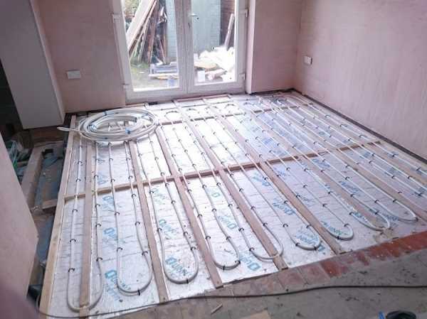 Трубы укладываются на слой гидроизоляционного материала для защиты пола от конденсата