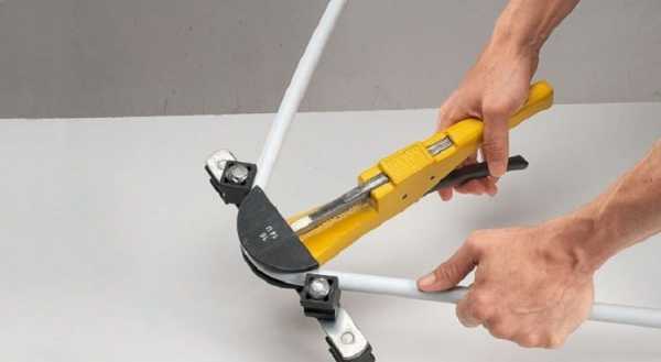- Резак. Приспособление, напоминающее секатор, позволяет ровно отрезать трубу.