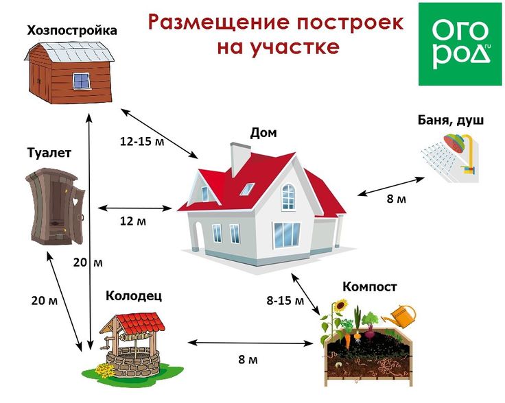 Туалет должен находиться подальше от колодца либо места, где планируется его устройство. Ориентировочное расстояние — около 20 — 25 м.
