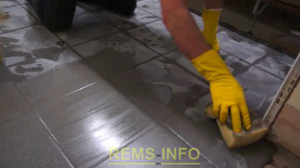 Через указанное время можно смывать остатки с плитки. Делается это обычно губкой, и водой.