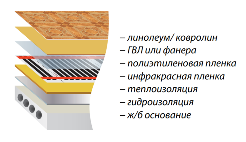 Линолеум – гибкий материал покрытия, класть его непосредственно на термопленку нельзя.