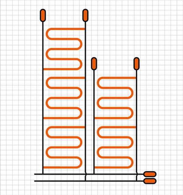 В том месте, где необходимо произвести поворот нагревательного элемента, разрезают секцию.