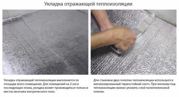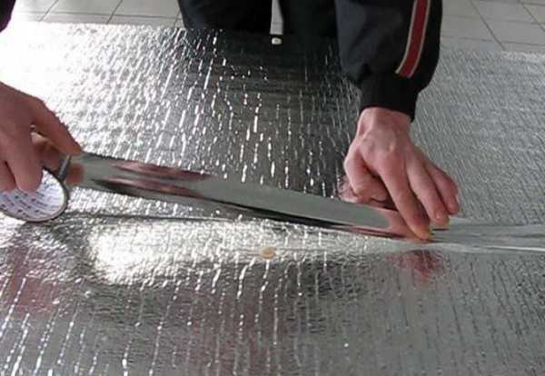 Теплоизоляция нередко изготавливается на основе отражающих, фольгированных и прочих материалов. Необходимо подготовить теплоизоляционный материал в соответствии с размерами помещения и уложить его металлизированной стороной наверх. Полосы рекомендуется соединить при помощи скотча.