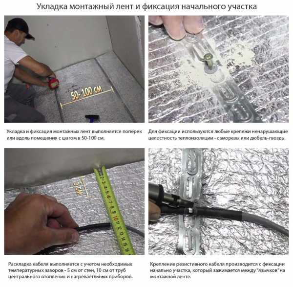 В укладке теплого пленочного пола выполняется ряд стандартных действий, представленных следующей подборкой фото: