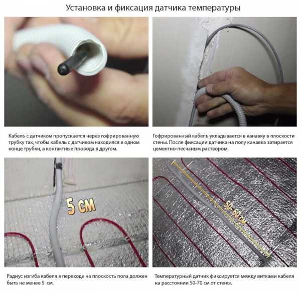 - Термодатчик необходимо располагать в середине конструкции, что позволит сэкономить провода. Кроме этого, он обязательно должен располагаться в прохладном месте. Для термодатчика с проводами потребуется использование гофротрубы.